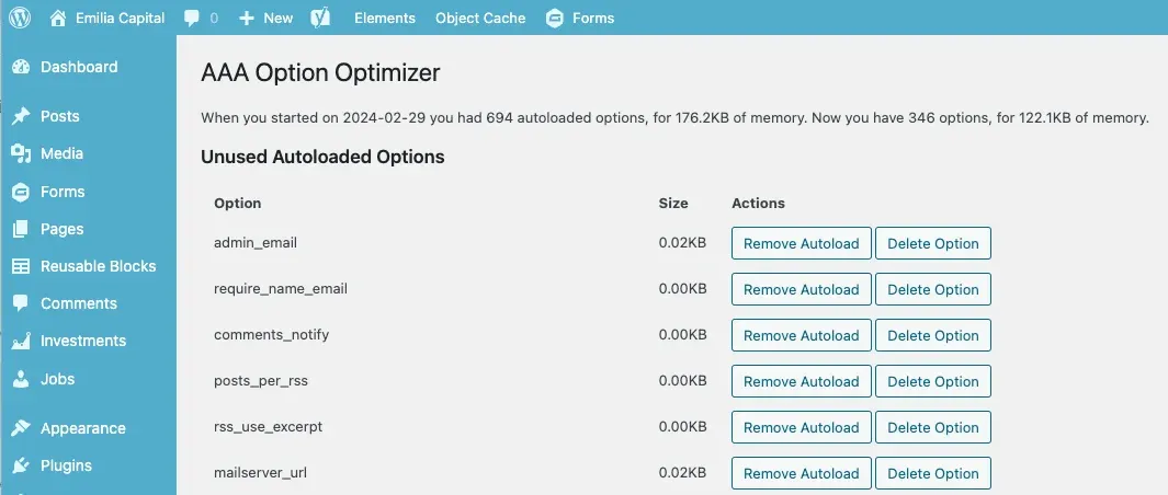 This wouldn’t be so bad if WordPress didn’t load all the options that are set to “autoload=yes” into its memory in one big load action. Since stray options stay behind in the database when you uninstall a plugin, those options are still loaded into the memory on every pageview. Every. Single. Time.