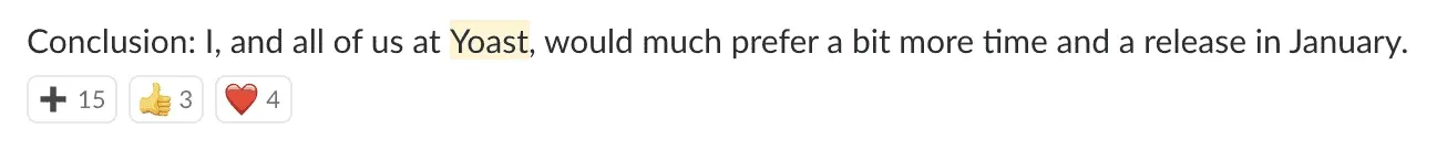 When I mentioned earlier today in the WordPress Slack’s #core-editor channel that I think we should push back, the response was pretty positive: